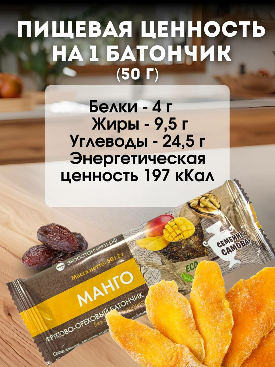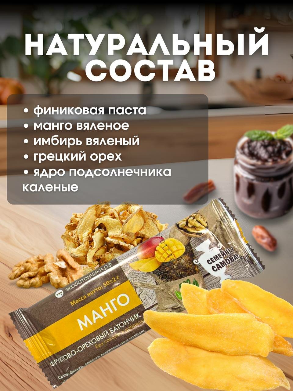 Батончик без сахара Фруктово-Ореховый "Манго" 50 гр 15шт информация: