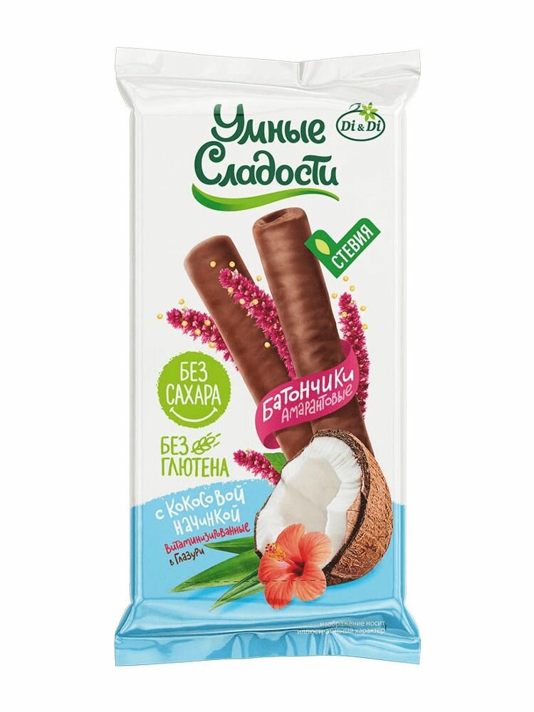Умные сладости Батончики амарантовые с кокосовой начинкой в глазури, 20 г, 20 шт информация: