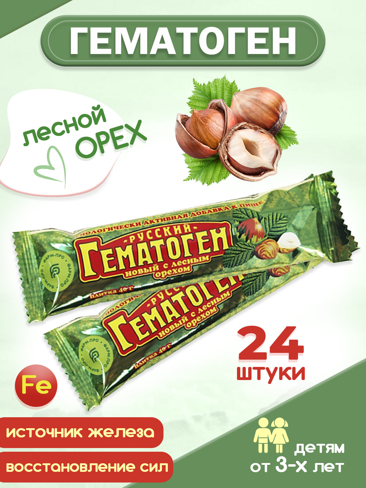Гематоген Русский со вкусом Лесного ореха, в наборе 24 штуки по 40 грамм информация: