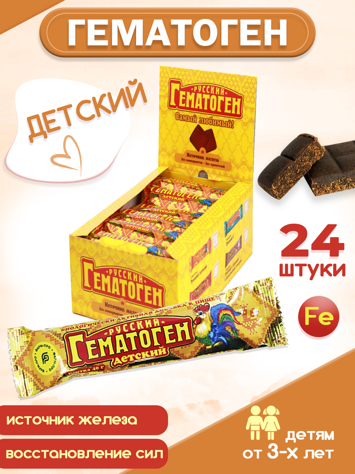 Гематоген "Русский" детский, в наборе 24 батончика по 40 грамм информация: