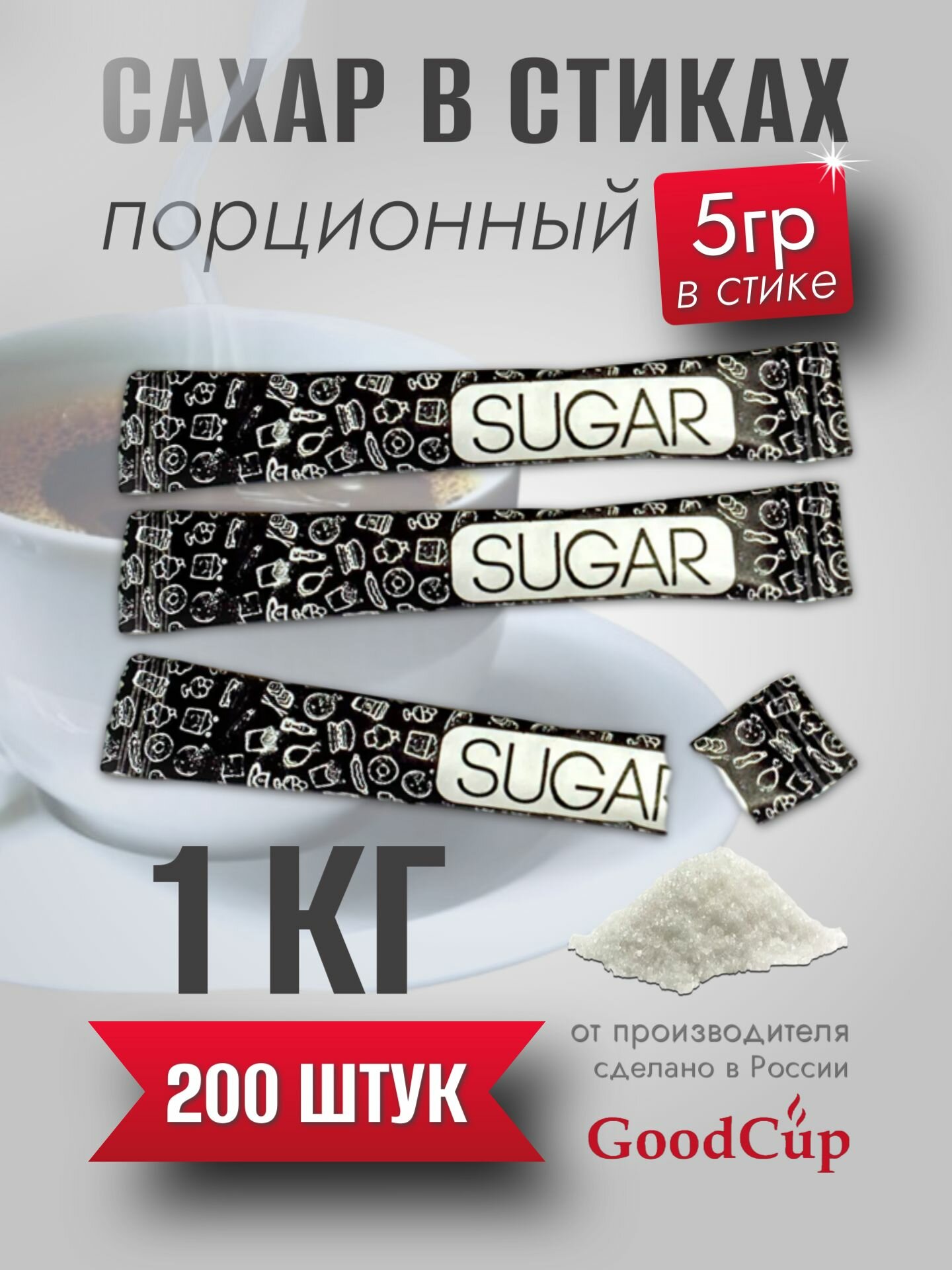 Сахар белый GoodCup порционный в стиках 5 грамм 200 штук, 1 кг информация: