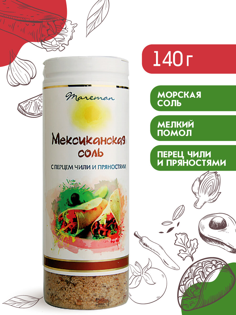 10 цен на Соль морская пищевая, Мексиканская соль, помол №0, Mareman, 140 г