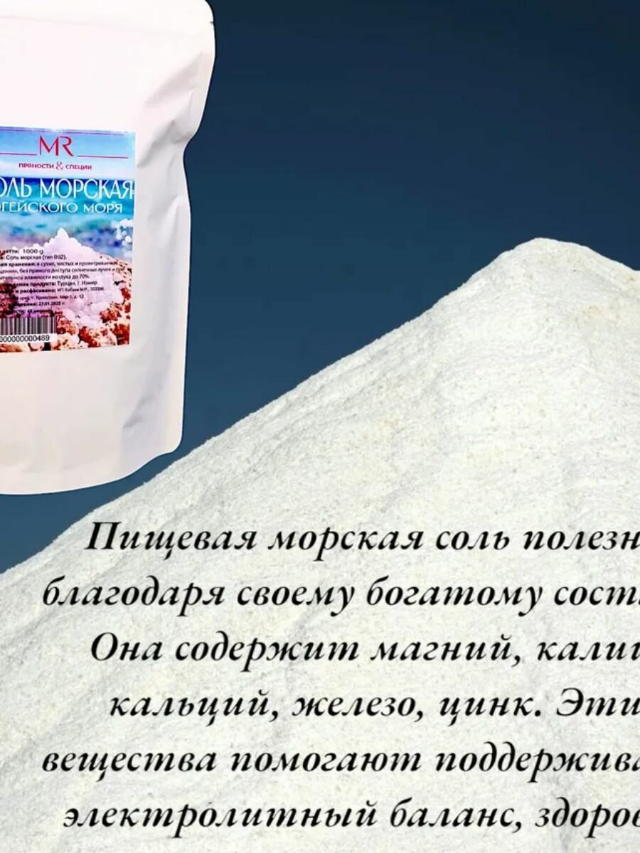 Соль морская пищевая "Billur Tuz" B04, высший сорт, дой-пак, 1002 г информация:
