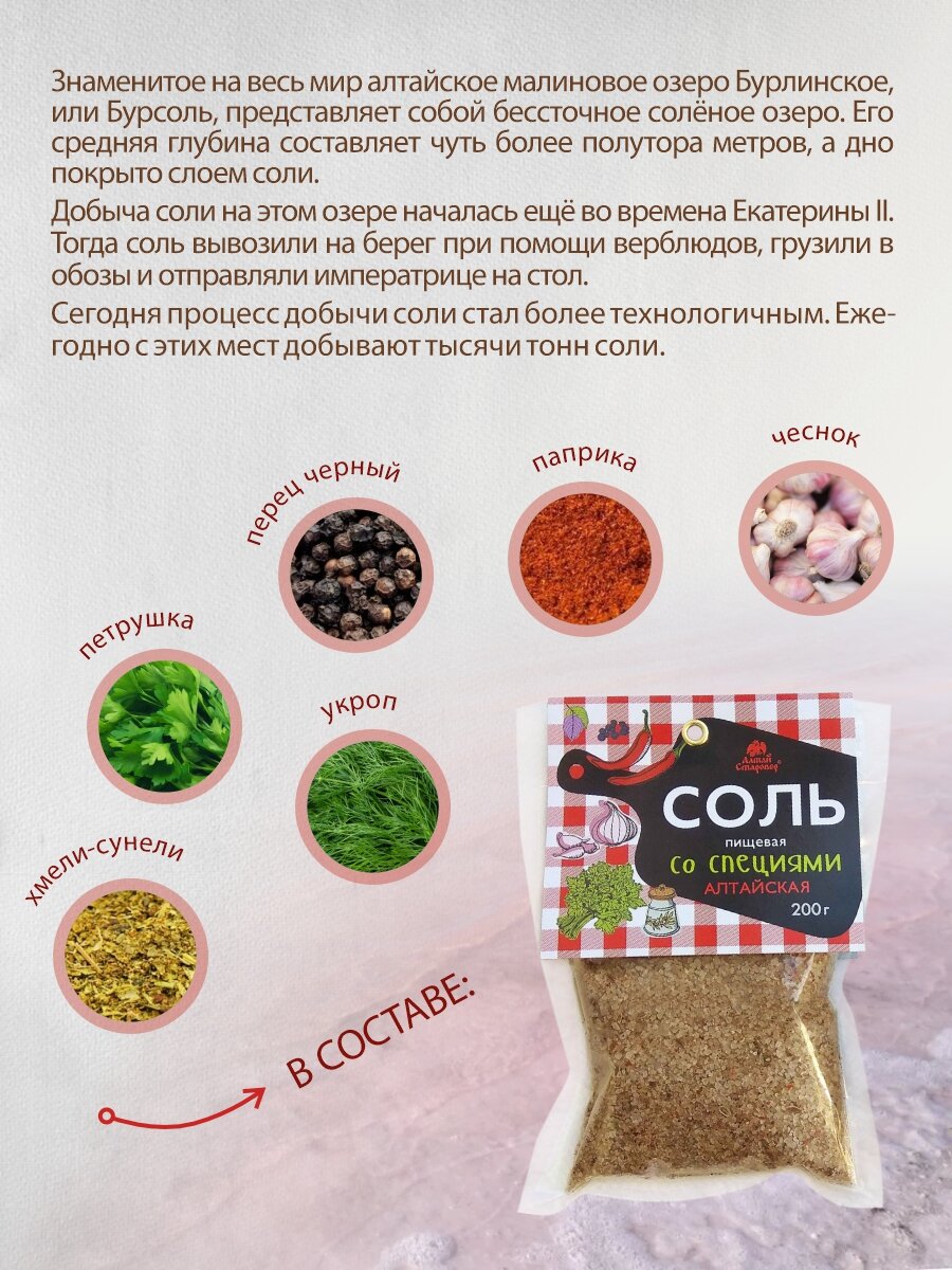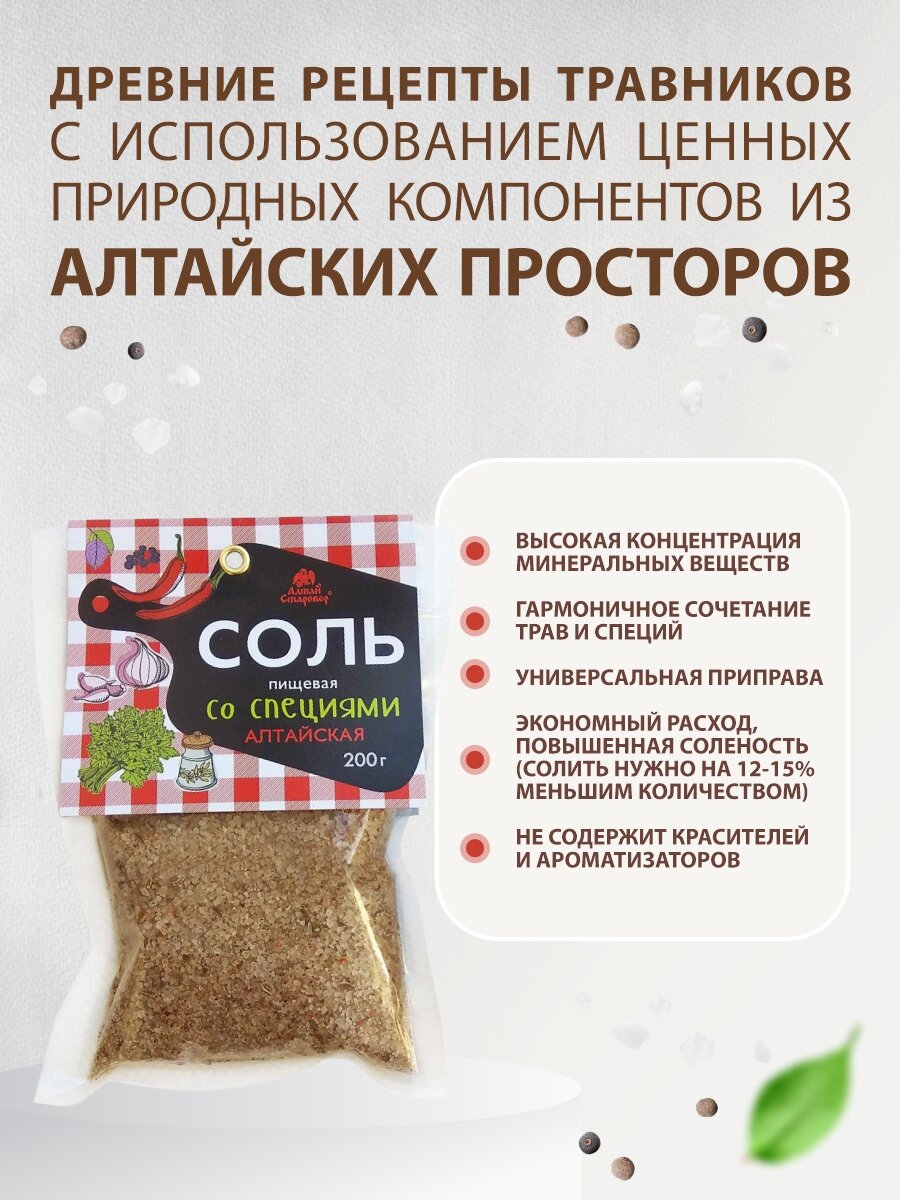 Соль алтайская пищевая, универсальная со специями, 200 г, Алтай Старовер информация: