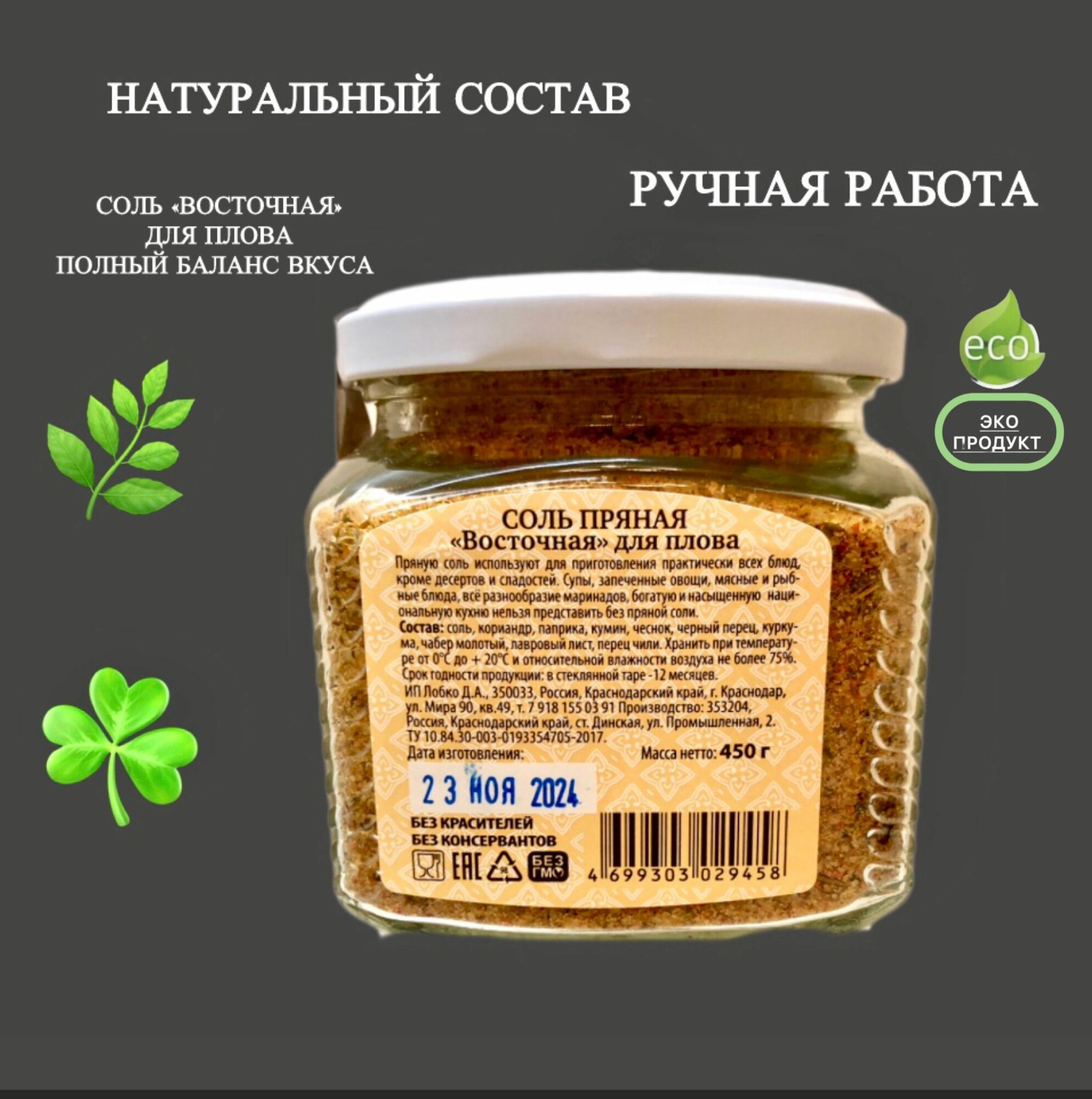 Соль Восточная пряная для плова, ручная работа, Краснодарский край, 450 гр Х 1 шт, стекло, винтовая крышка информация: