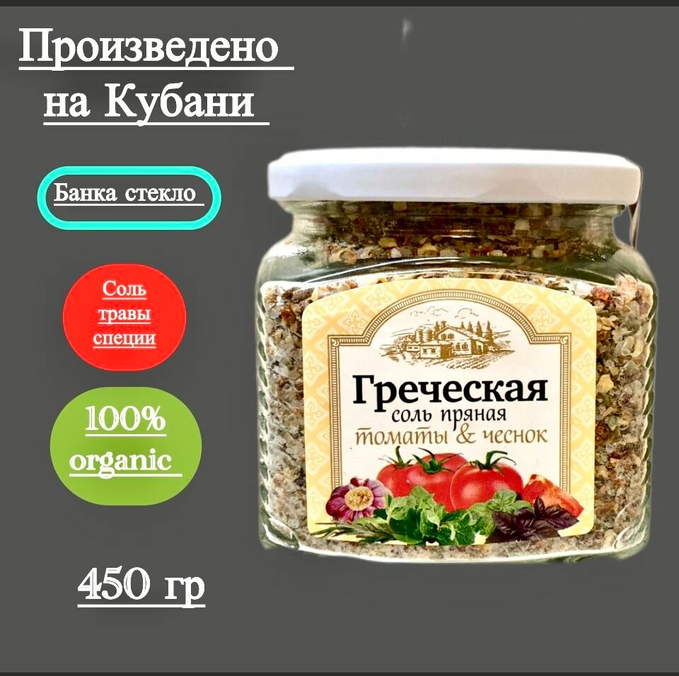 10 цен на Соль Греческая пряная томаты&чеснок, ручная работа, Краснодарский край, 450 гр Х 1 шт, стекло, винтовая крышка