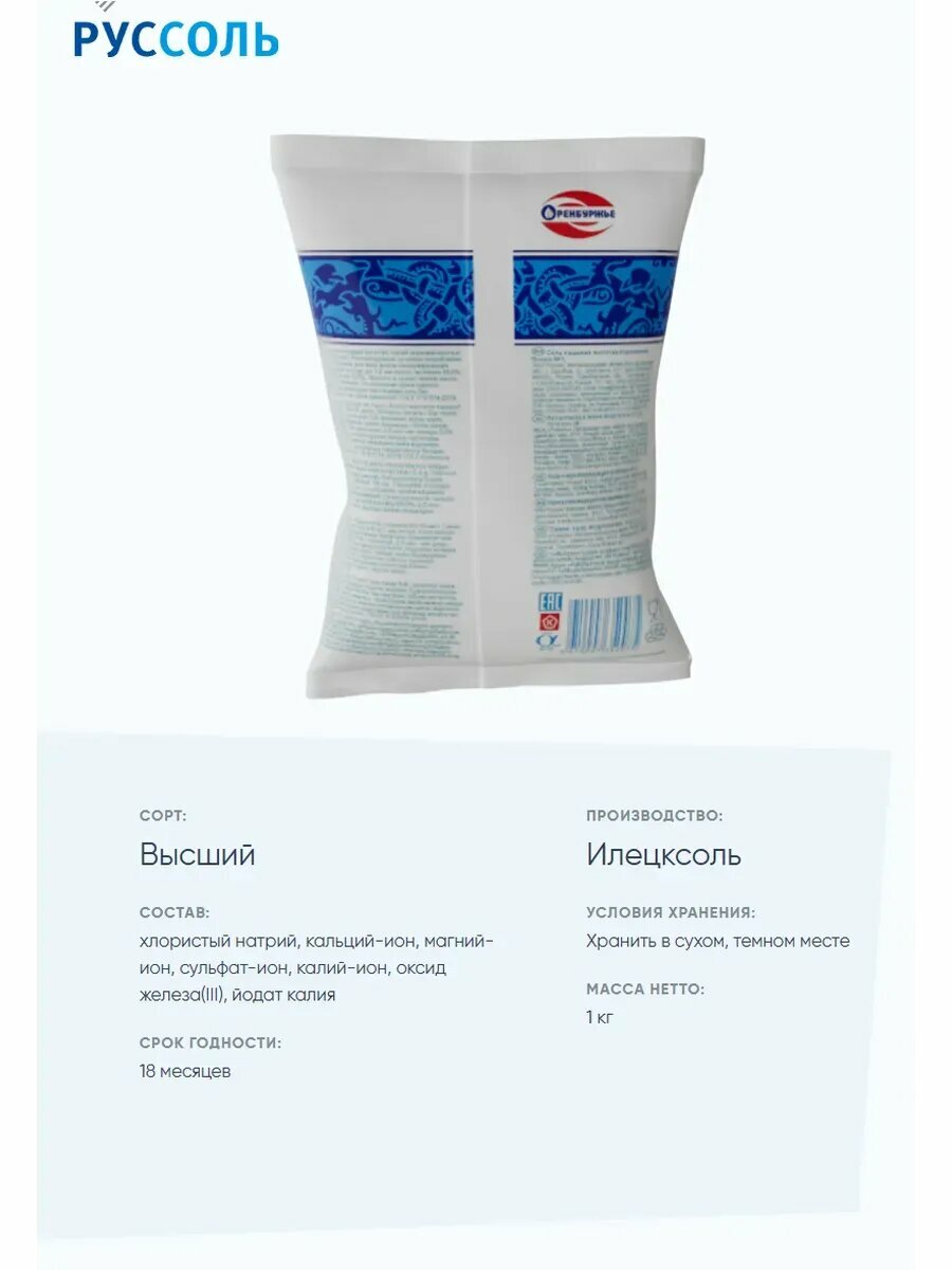 Соль Илецкая йодированная пищевая 1 кг информация: