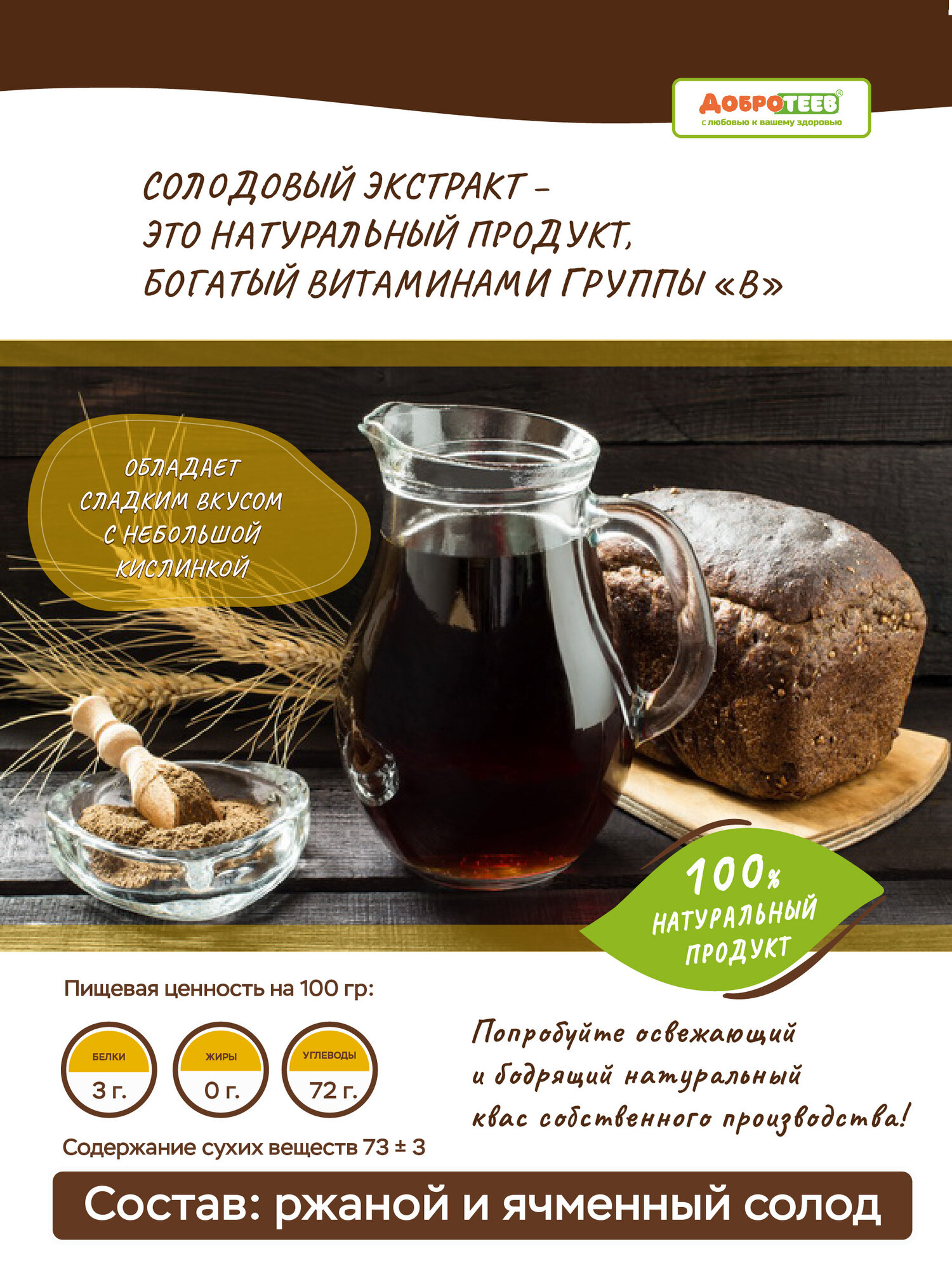 Солодовый экстракт для приготовления кваса (ржаной) 650г информация: