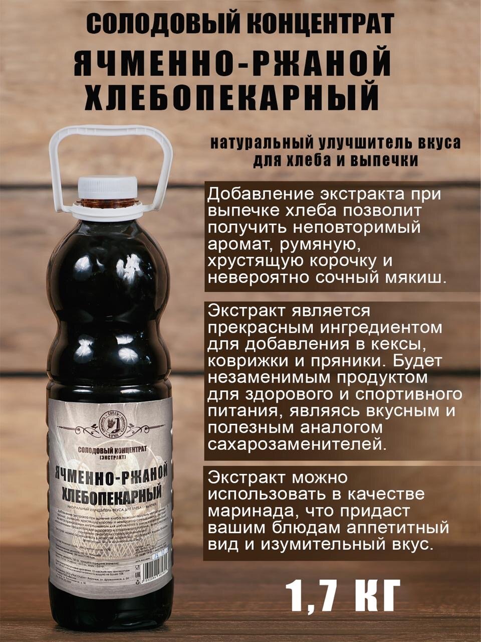 Солодовый экстракт Ячменно-ржаной хлебопекарный 1,7 кг, натуральный улучшитель вкуса для хлеба и выпечки информация: