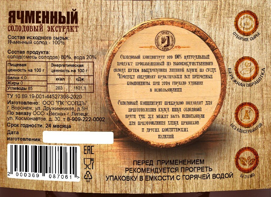 0 отзывов, средняя оценка 0. Чтобы купить «Солодовый экстракт Ячменный 6.9 кг, неохмеленный, для пива, для сусла» по лучшей цене мы сканируем авито, алиэкспресс, маркет, озон, савеловский, плеер, горбушку, беру, официальные сайты и находим минимальную. Администрация не несет ответсвенность актуальность цен на Солодовый экстракт Ячменный 6.9 кг, неохмеленный, для пива, для сусла, более подробно узнавайте на сайте магазина.