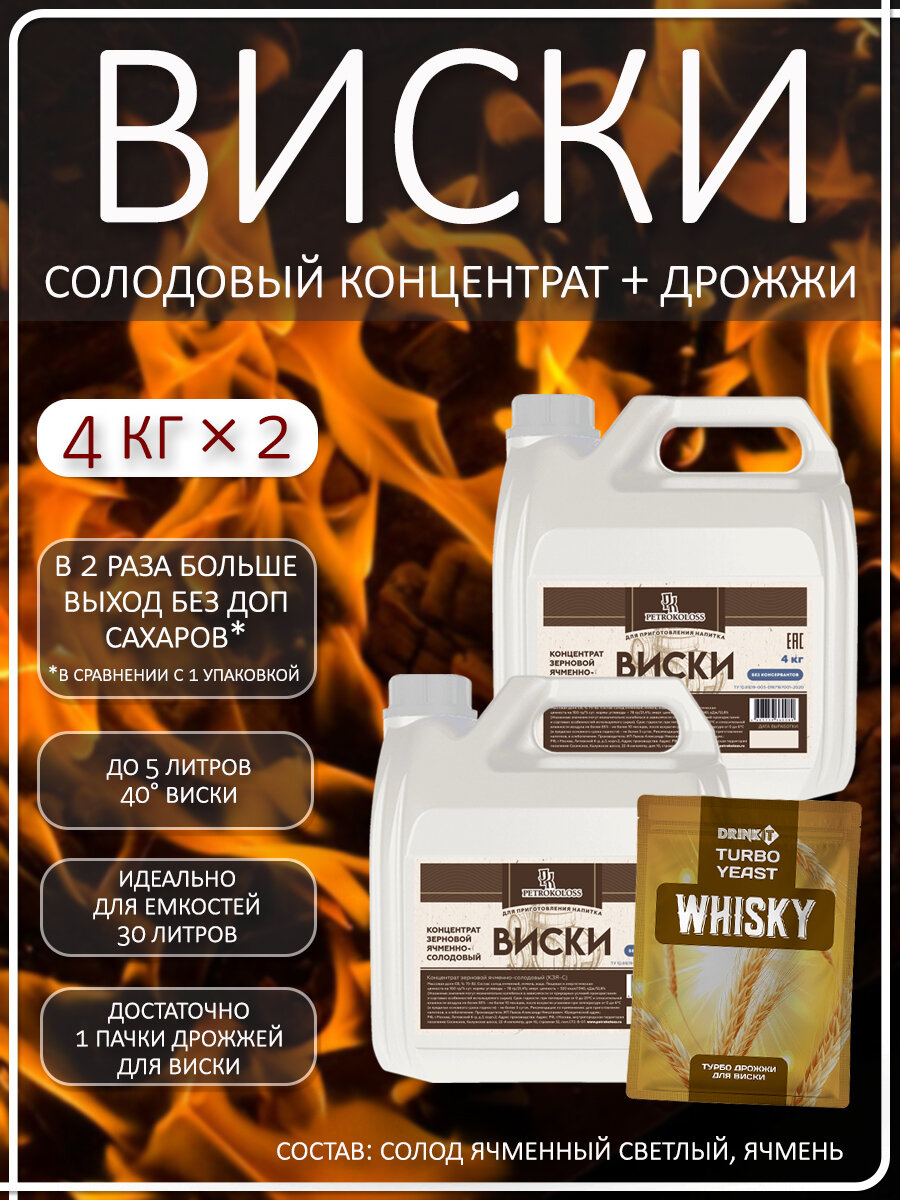 Солодовый концентрат для виски Petrokoloss 4 кг, 2 штуки + дрожжи Drinkit Whisky 1 штука информация: