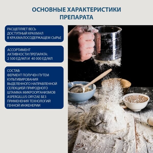 Фермент для гидролиза крахмала альфа-амилаза грибная, Амилоризин 2500ед/гр.100гр. информация: