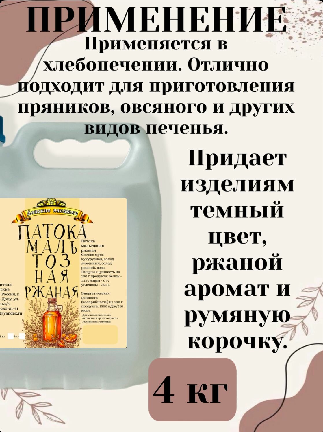 Патока мальтозная ржаная 4 кг "Донские напитки" информация: