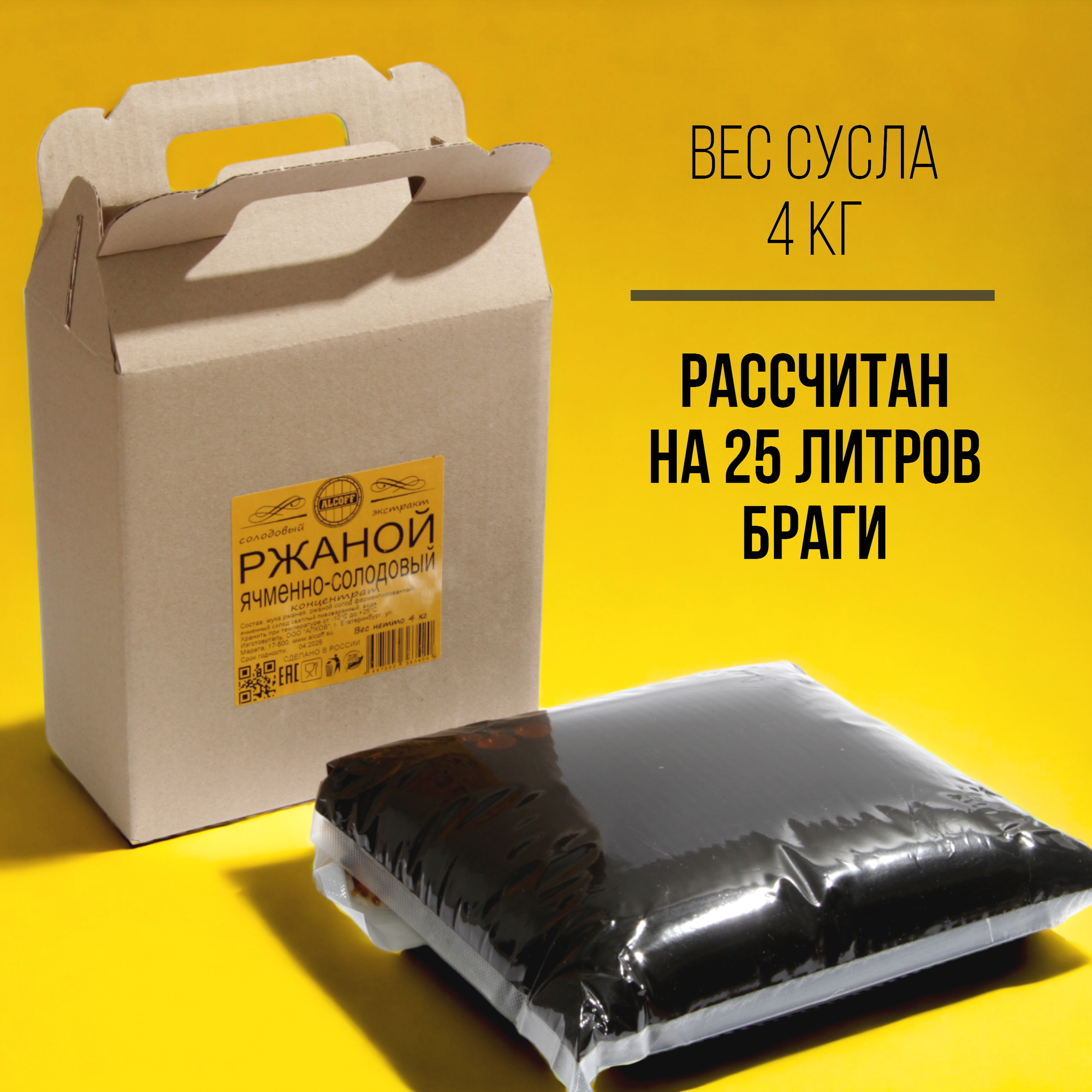 Солодовый концентрат ALCOFF "Ржаной виски" (ржаной ячменно-солодовый концентрат), 4 кг информация: