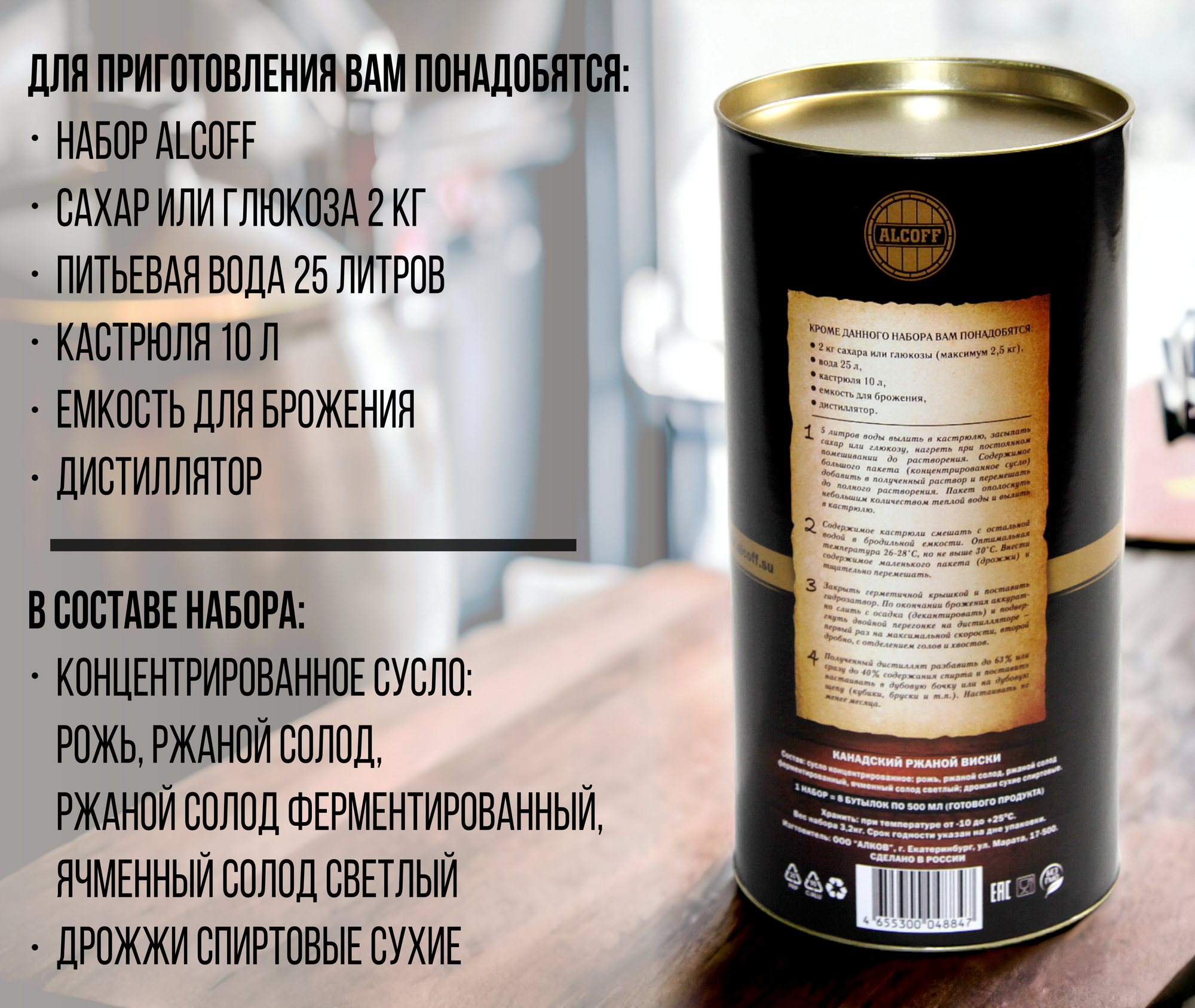 Солодовый концентрат для виски ALCOFF "RYE WHISKEY" (Канадский ржаной), набор, 3,2 кг информация: