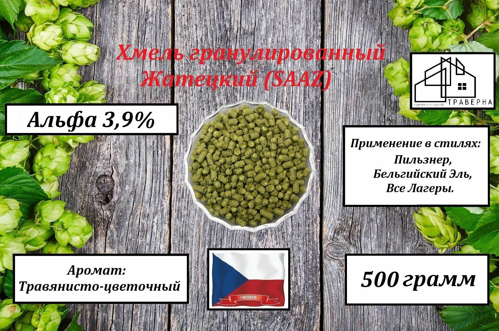 Хмель гранулированный Жатецкий (SAAZ) тип 90 альфа 3,9 % 500грамм информация: