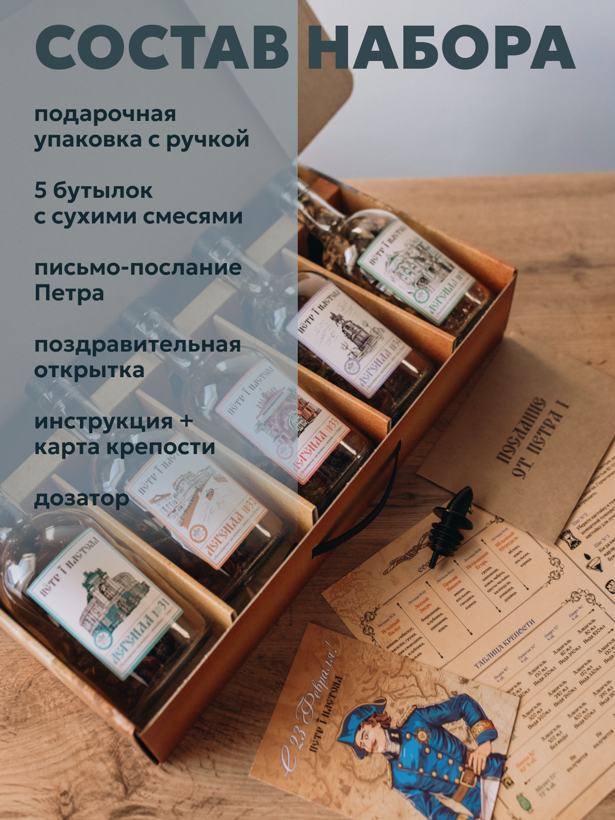 Отзывы на Набор для приготовления настоек Пётр I Настоял "23 Февраля", 5 бутылок, 0.5 л, коричневый