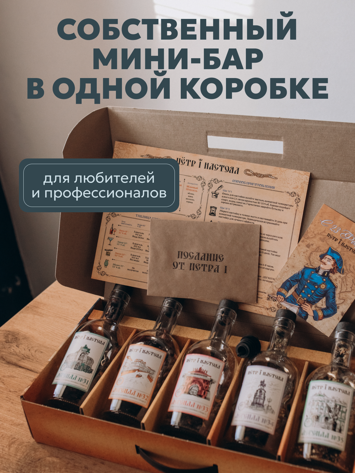 10 цен на Набор для приготовления настоек Пётр I Настоял "23 Февраля", 5 бутылок, 0.5 л, коричневый