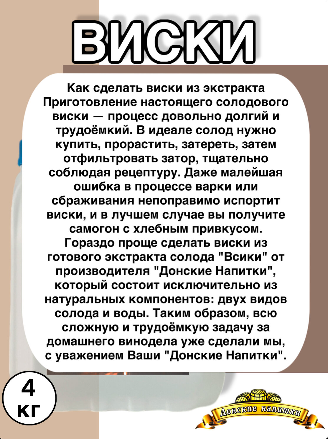 Солодовый концентрат донские напитки "виски", 4 кг информация: