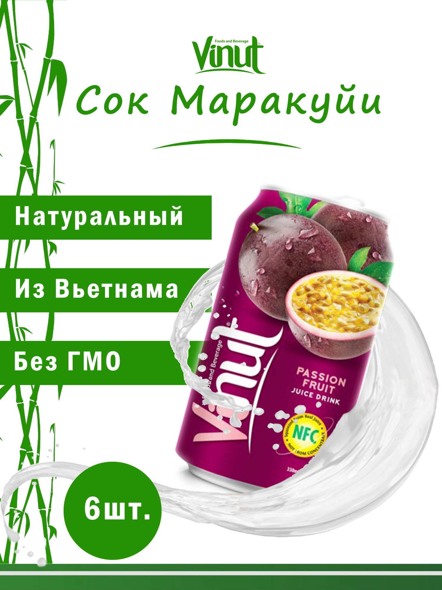 Vinut Напиток сокосодержащий безалкогольный негазированный "Сок Маракуйи", 330мл, набор 6шт. экзотические фруктовые напитки информация: