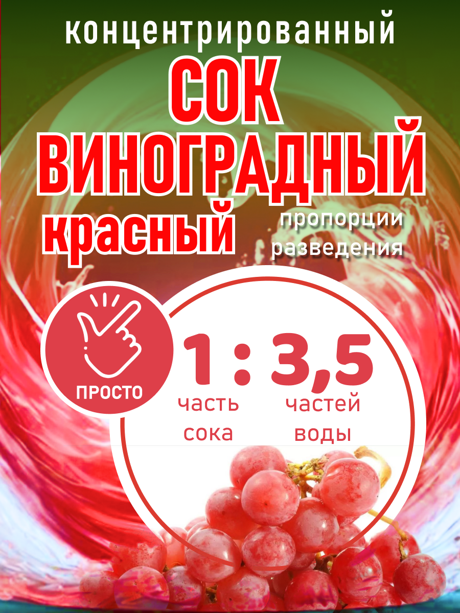 Сок Виноградный Красный концентрированный Happy Apple 2 шт по 1 кг, без сахара информация: