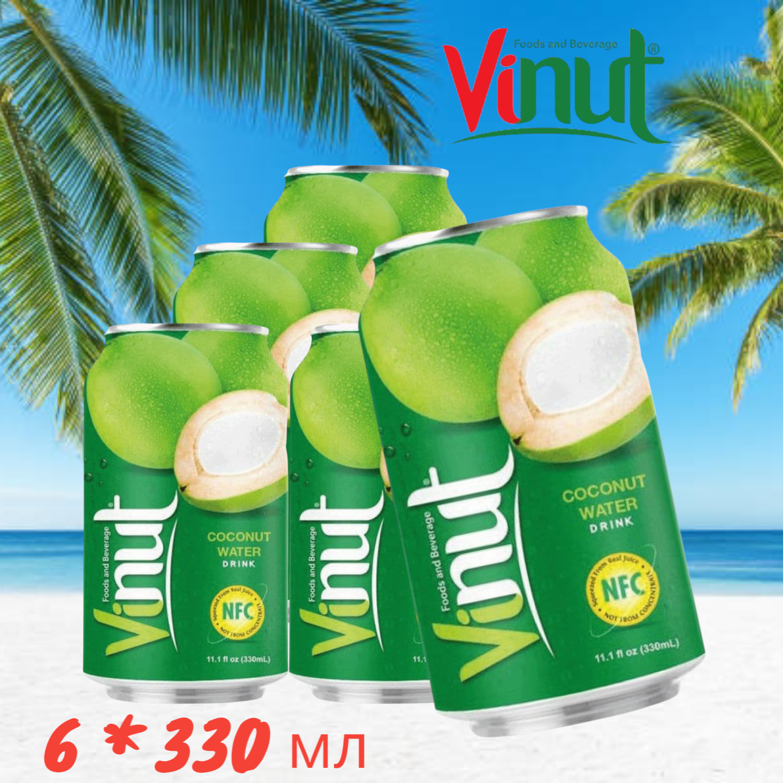 Напиток негазированный с соком Vinut Кокосовая Вода, 6 шт * 330 мл, Вьетнам информация: