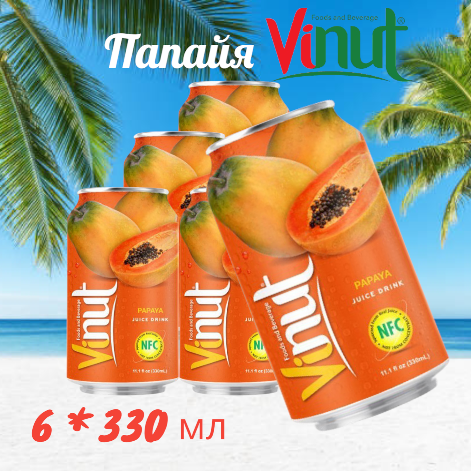 Напиток негазированный с соком Vinut Папайя, 6 шт * 330 мл, Вьетнам информация: