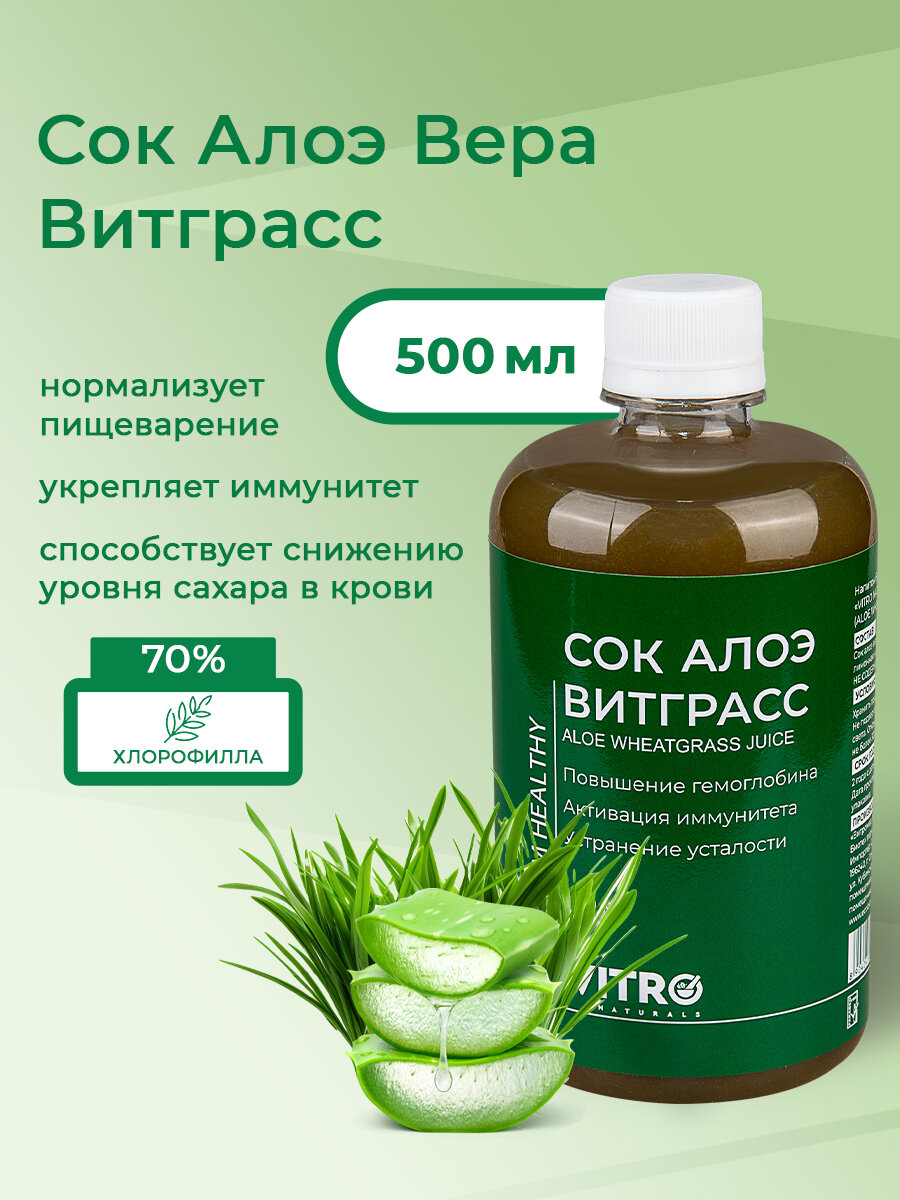 10 цен на Напиток "Алоэ Вера и Витграсс" Vitro Naturals, для укрепления иммунитета, 500мл