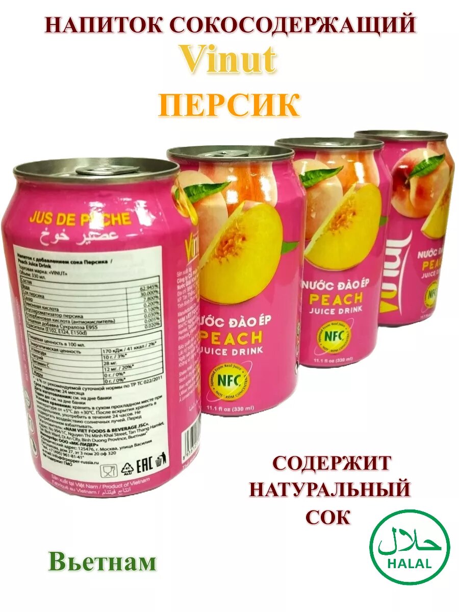 Напиток сокосодержащий Vinut Персик, 4 банки информация: