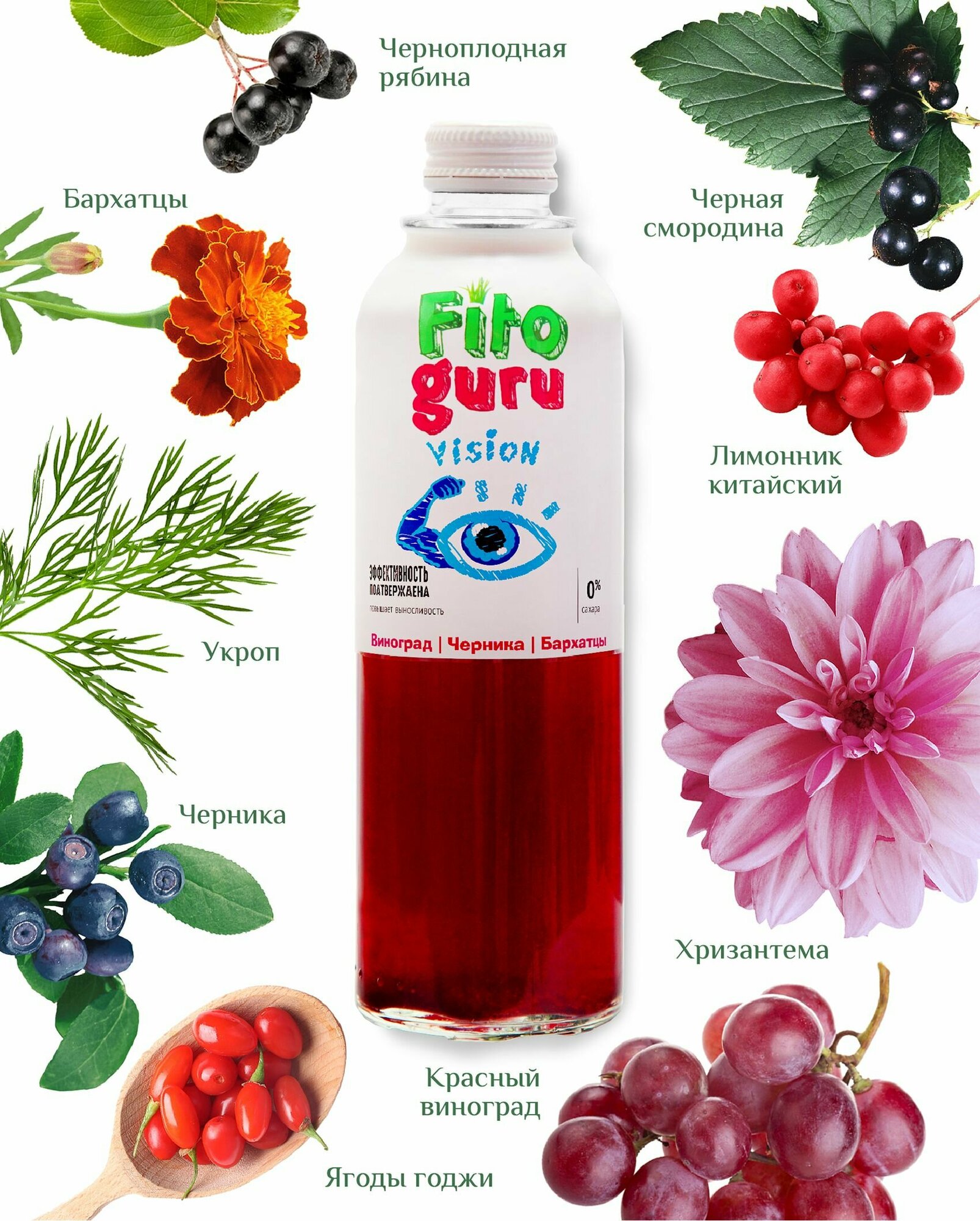 10 цен на Набор напитков сокосодержащих обогащенных Fitoguru Vision Черника - Черная смородина - Бархатцы, 0,33 мл, ( 12 шт. в уп.)