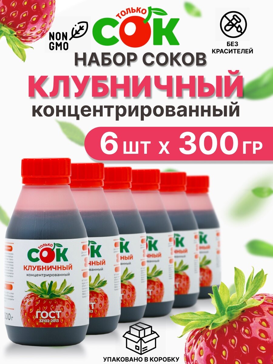 Концентрированный Сок Клубничный "Только СОК" набор моновкус 6 шт по 300 г информация: