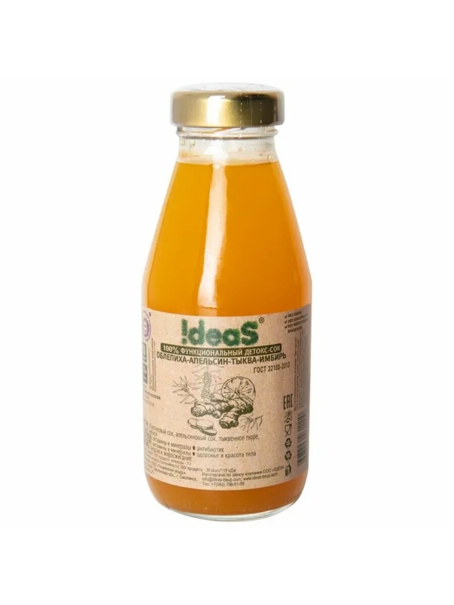 Сок ! DEAS "Облепиха-апельсин-тыква-имбирь", натуральный, органический, 0,3л, 6шт информация: