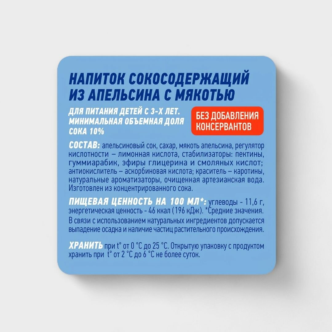 Напиток Pulpy "Апельсин", сокосодержащий, 0,45 л, 12 штук в упаковке информация: