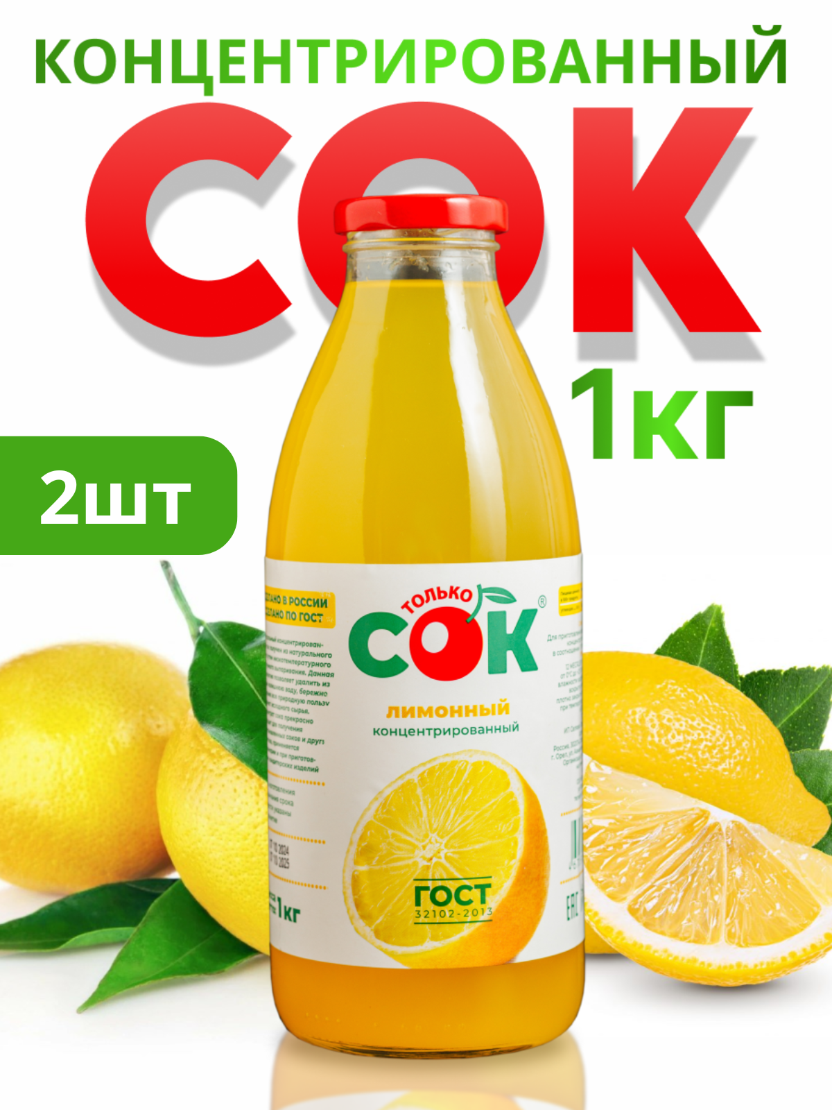 Концентрированный сок Лимонный "Только СОК" 2шт по 1кг информация: