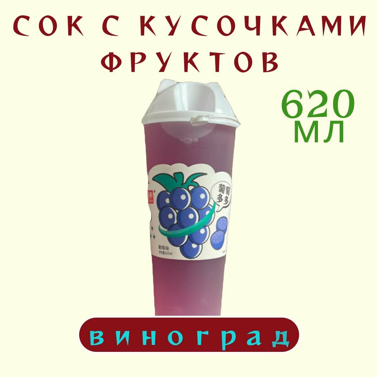 Отзывы на Напиток с кусочками фруктов бабл-ти со вкусом винограда 620 мл