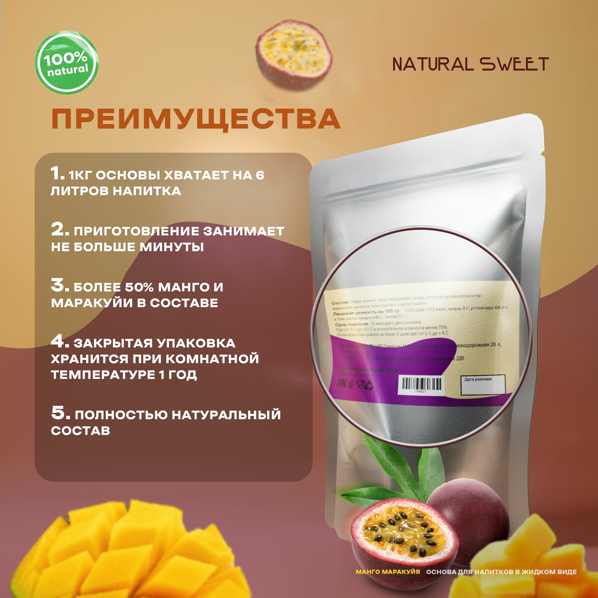 10 цен на Основа (Концентрат/Пюре) Манго - Маракуйя Natural Sweet 1 кг (для лимонада, чая, коктейлей, десертов, смузи)