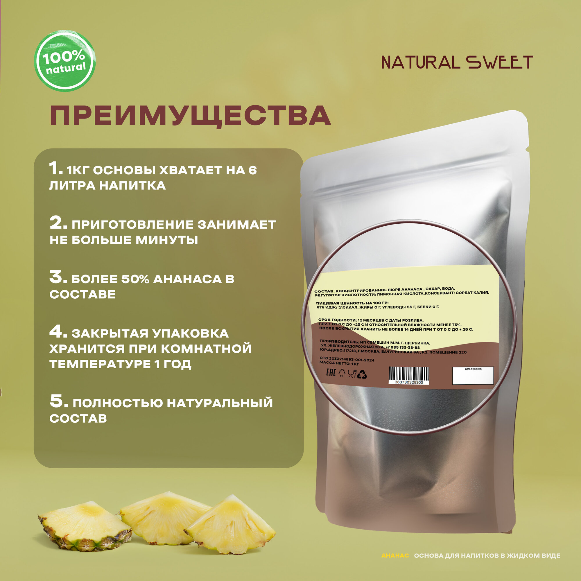 10 цен на Основа (Концентрат/Пюре) Ананас Natural Sweet 1 кг (для лимонада, чая, коктейлей, десертов, смузи)