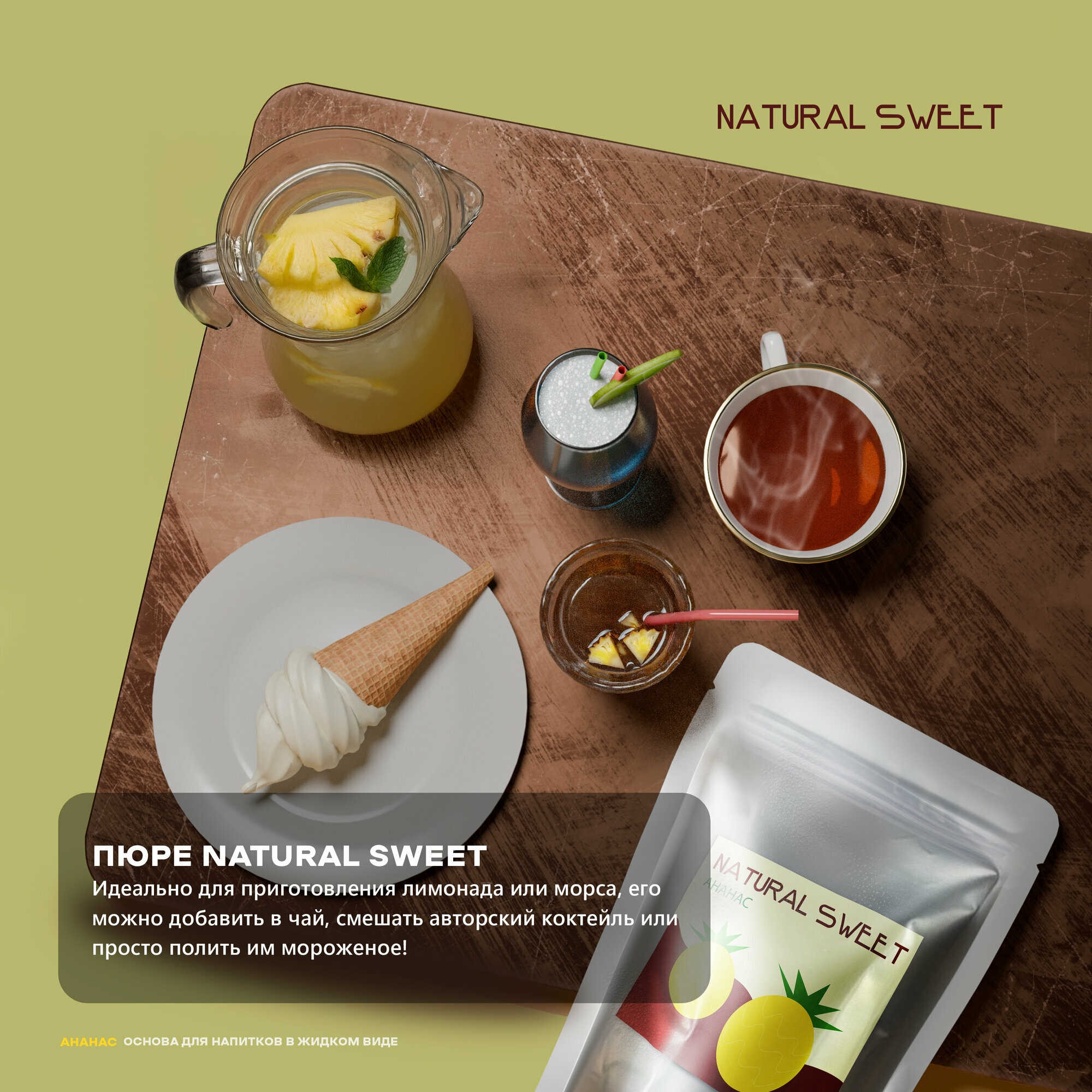 Основа (Концентрат/Пюре) Ананас Natural Sweet 1 кг (для лимонада, чая, коктейлей, десертов, смузи) информация: