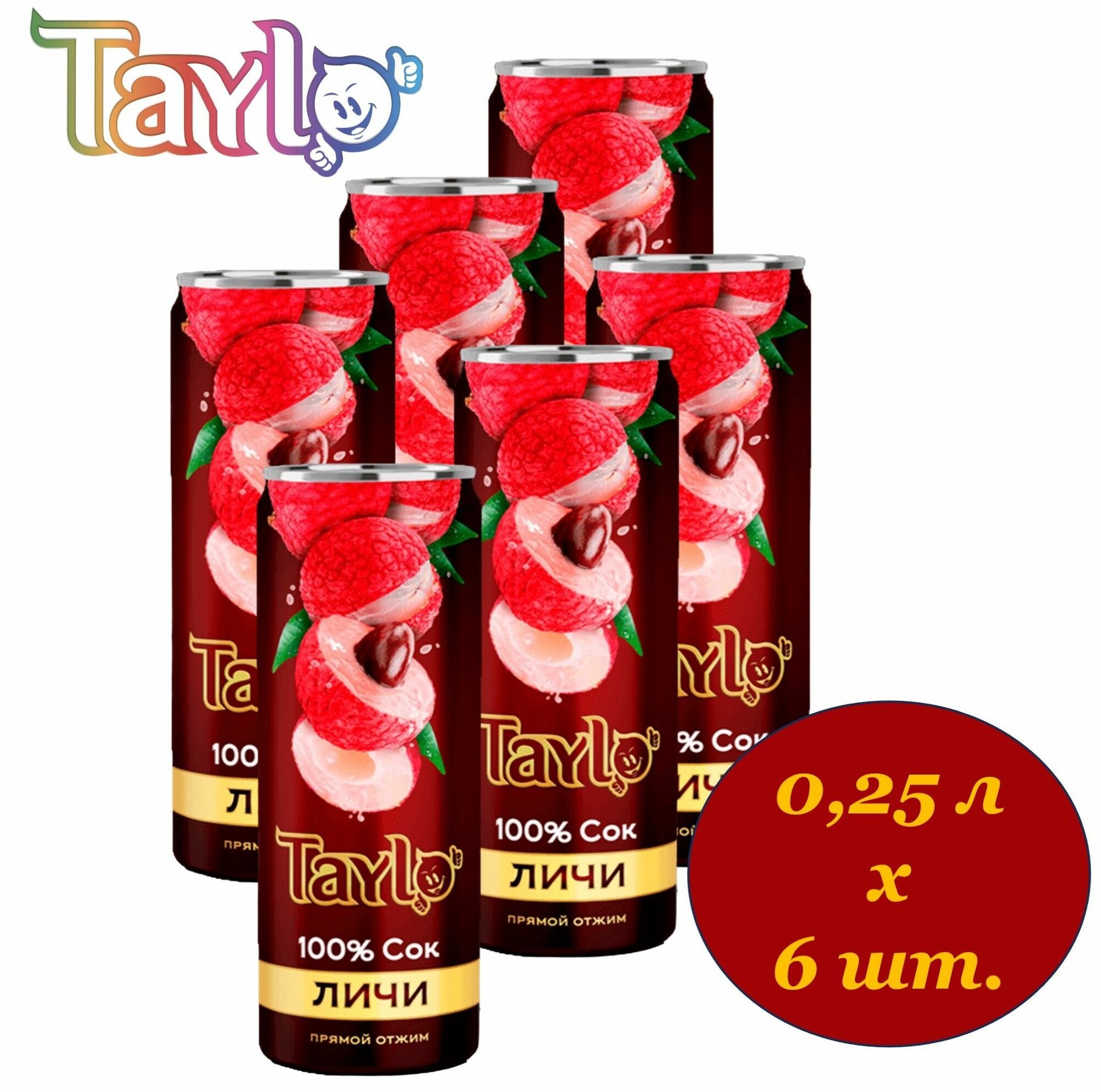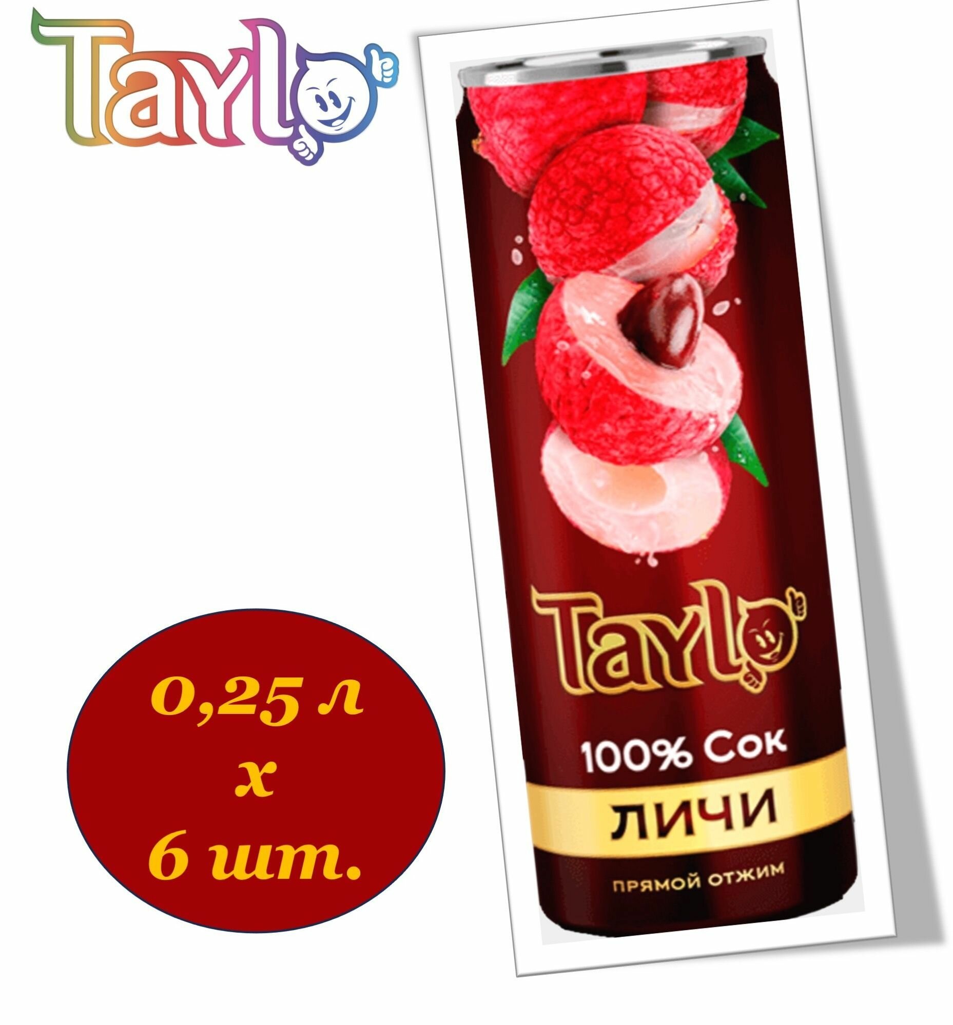 Сок Taylo Личи прямого отжима 0,25 л х 6 банок, без воды, сахара, красителей и консервантов информация: