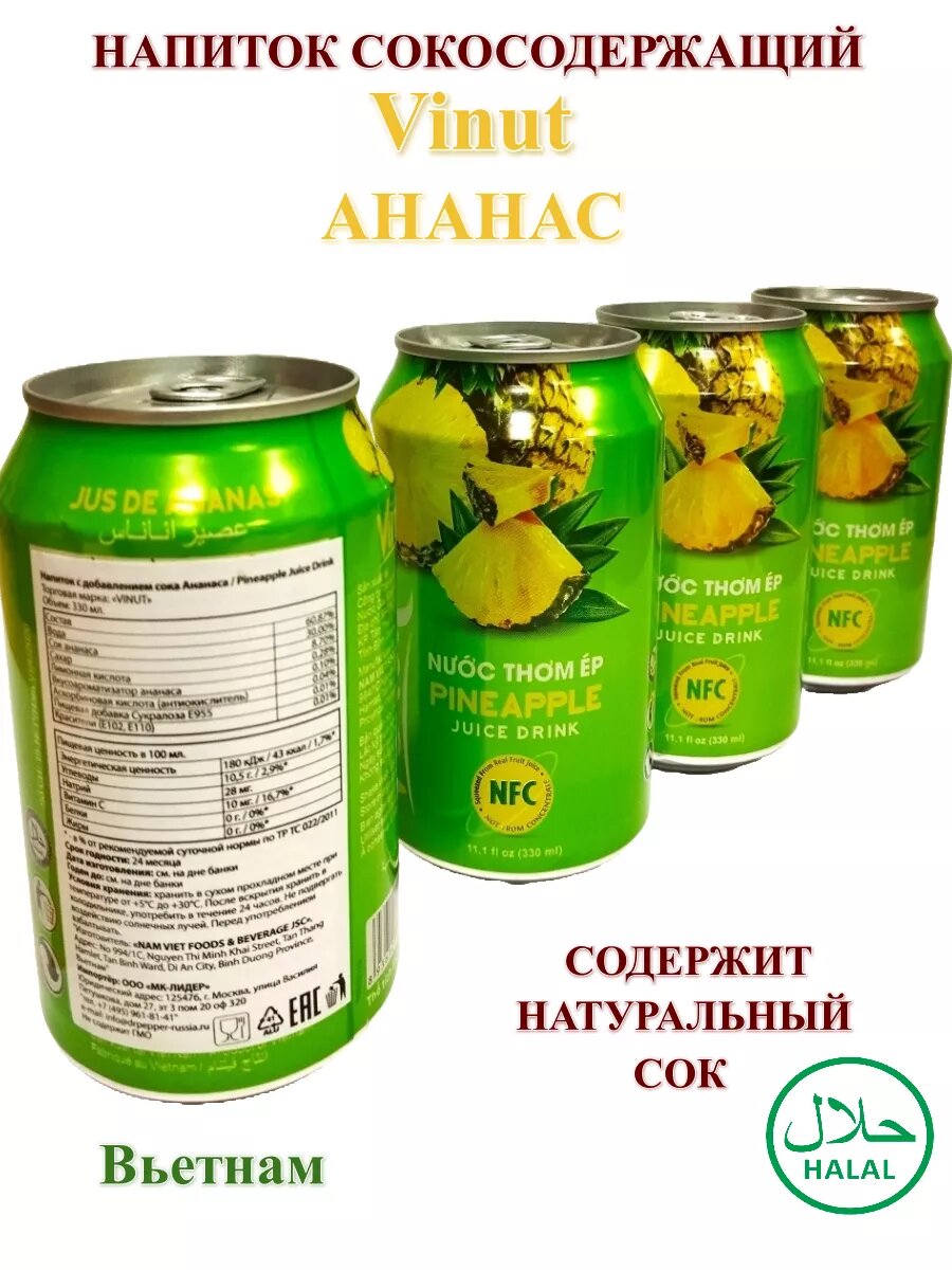 Напиток сокосодержащий Vinut Ананас, 4 банки информация: