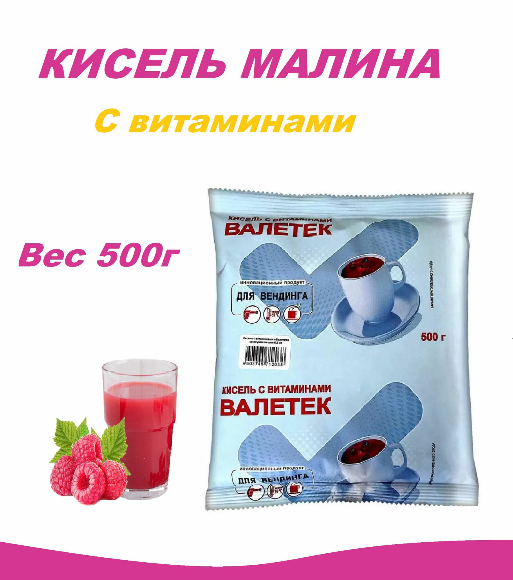 Кисель Валитек с ароматом Малина, растворимый, вакуумная упаковка, 500 г информация: