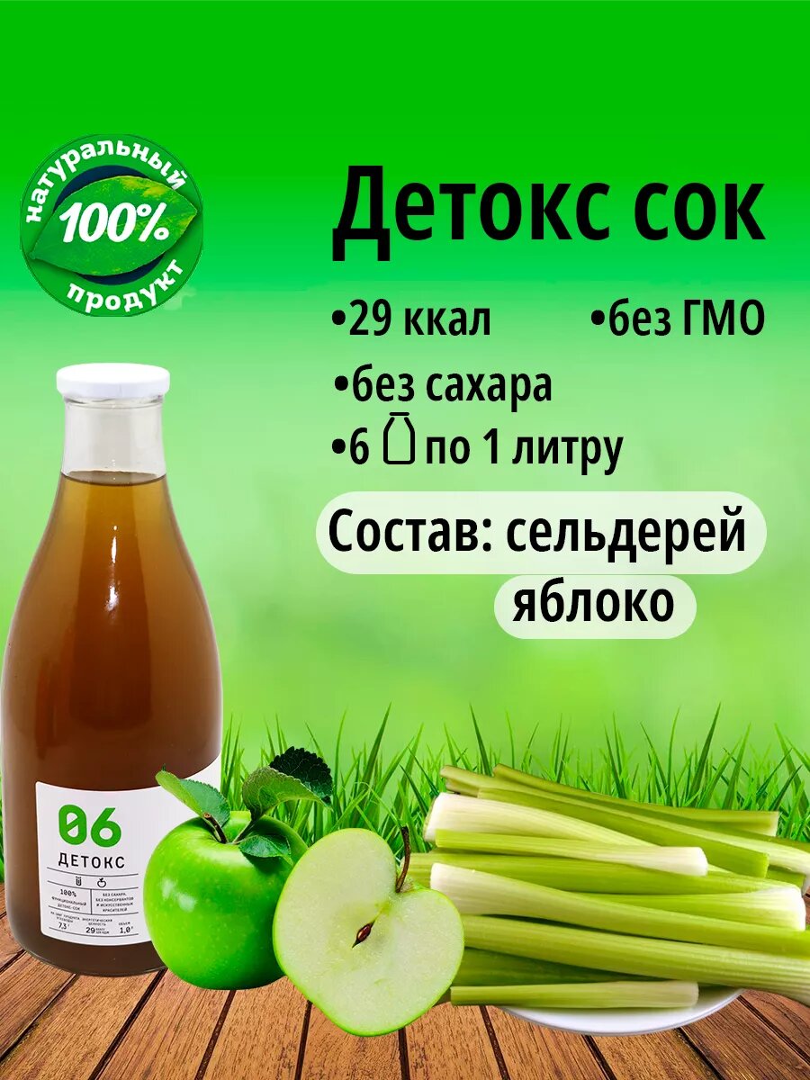 Сок детокс 06, Яблоко-сельдерей, 6шт по 1л информация: