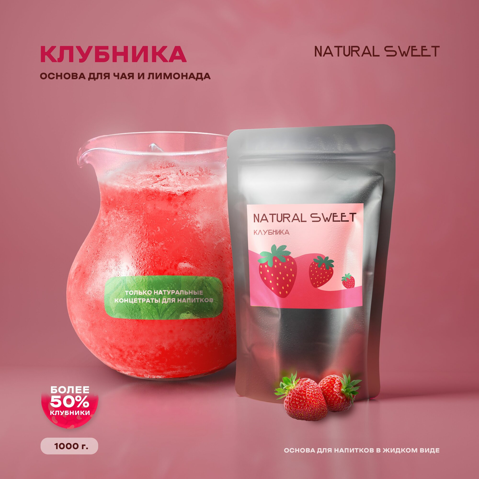 Основа (Концентрат/Пюре) Клубника Natural Sweet 1 кг (для лимонада, чая, коктейлей, десертов, смузи) информация: