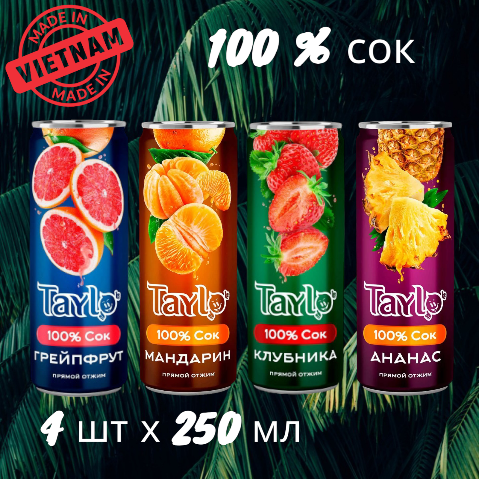 Сок прямого отжима 100 % Тайло Сок Мандарин (Taylo), 4 штуки по 250 мл, Вьетнам 1 050 ₽
