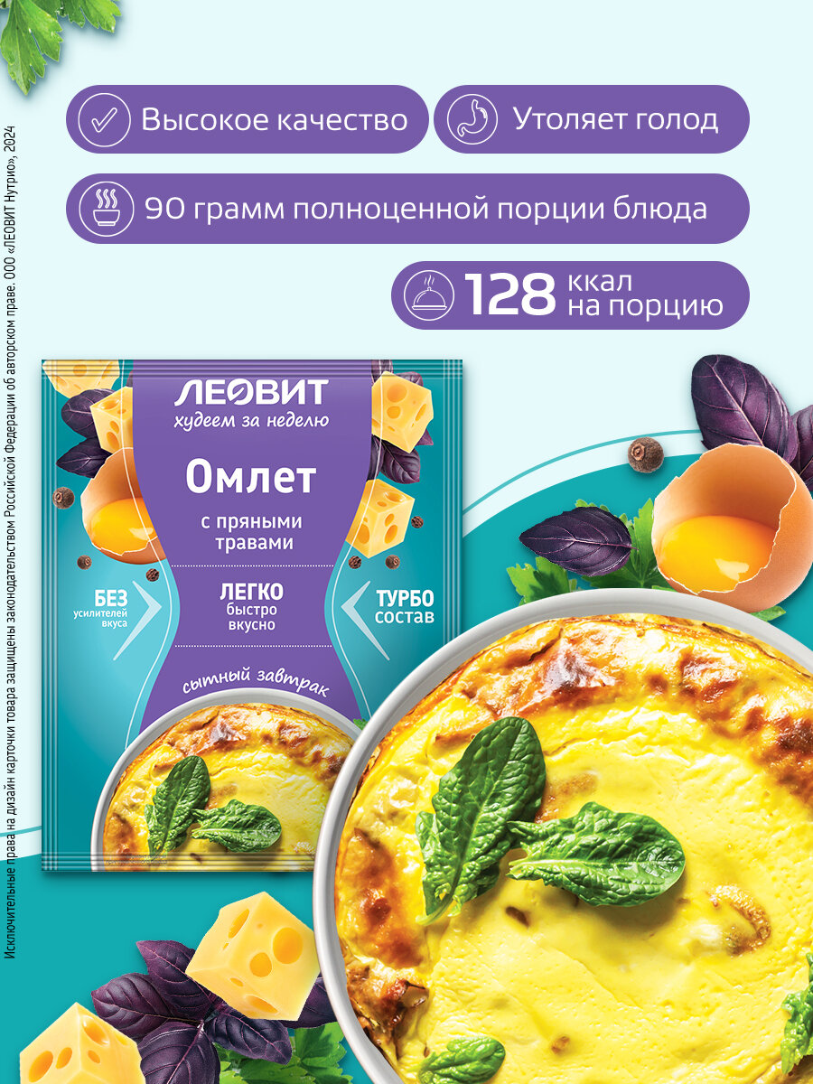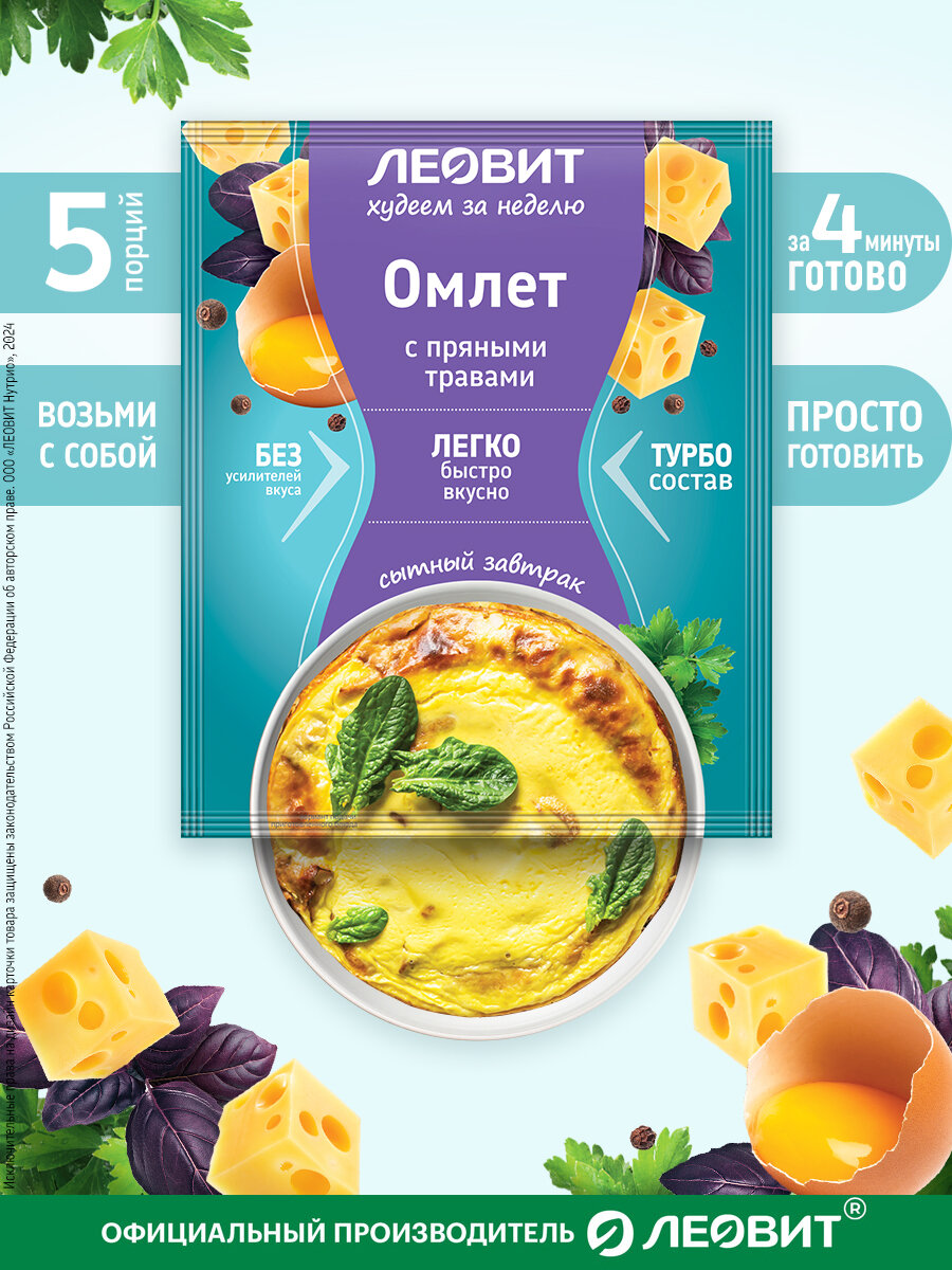 Сухая смесь для омлета с пряными травами Худеем за неделю ЛЕОВИТ диетическая для похудения быстрого приготовления 5 шт информация: