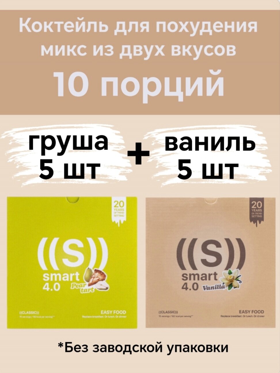 10 цен на Протеиновый коктейль для похудения 10 порций микс из двух вкусов груша 5 шт и ваниль 5 шт