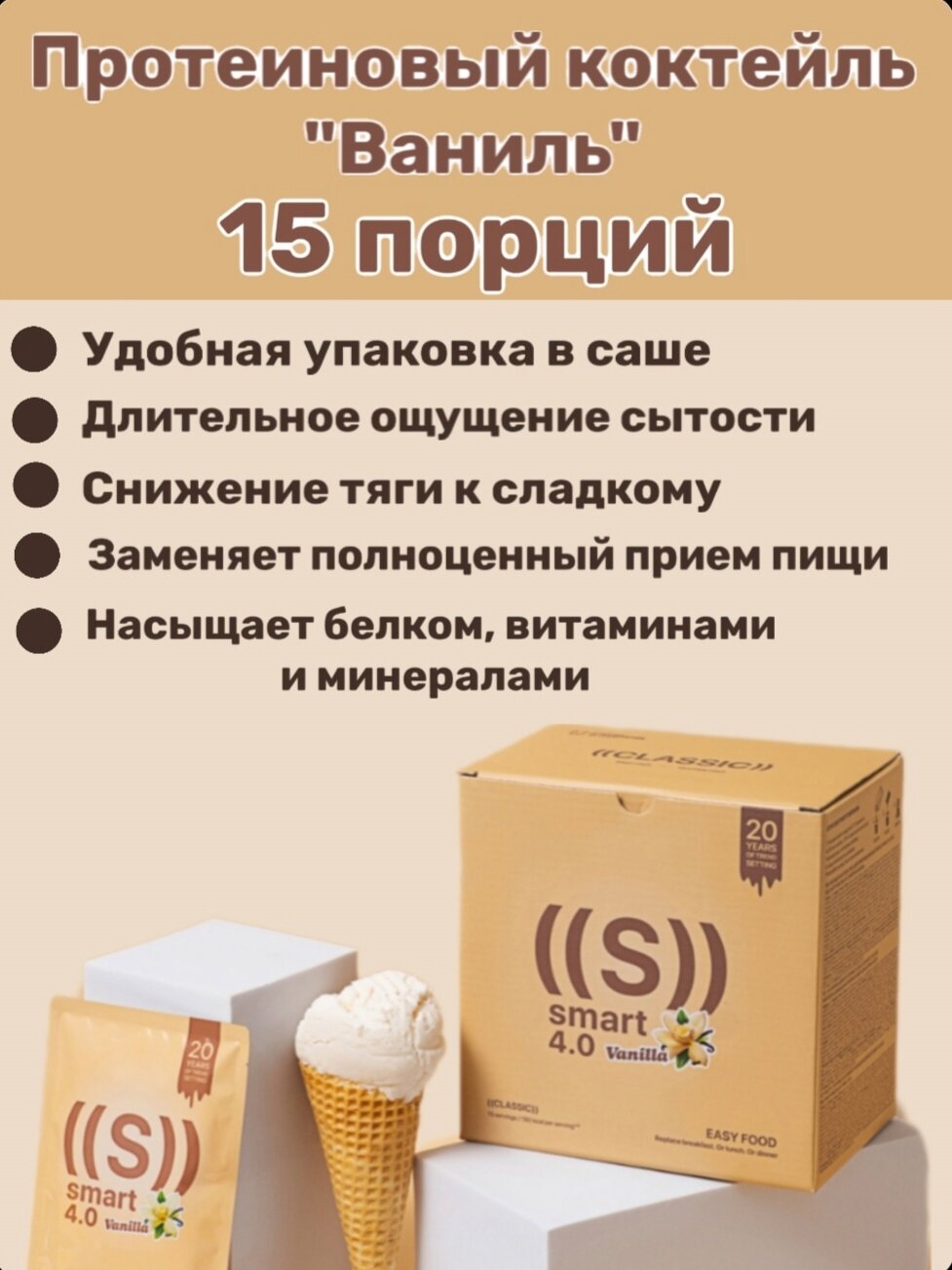 Протеиновый коктейль для похудения или набора мышечной массы со вкусом "Ваниль", 15 порций информация: