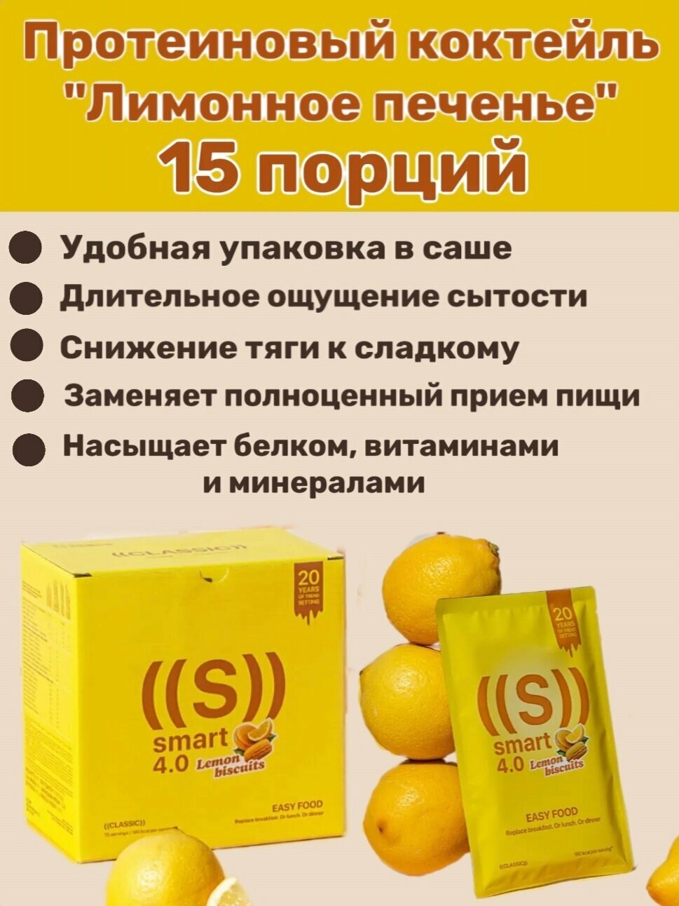 Протеиновый коктейль для похудения или набора мышечной массы 15 саше со вкусом "Лимонное печенье" информация: