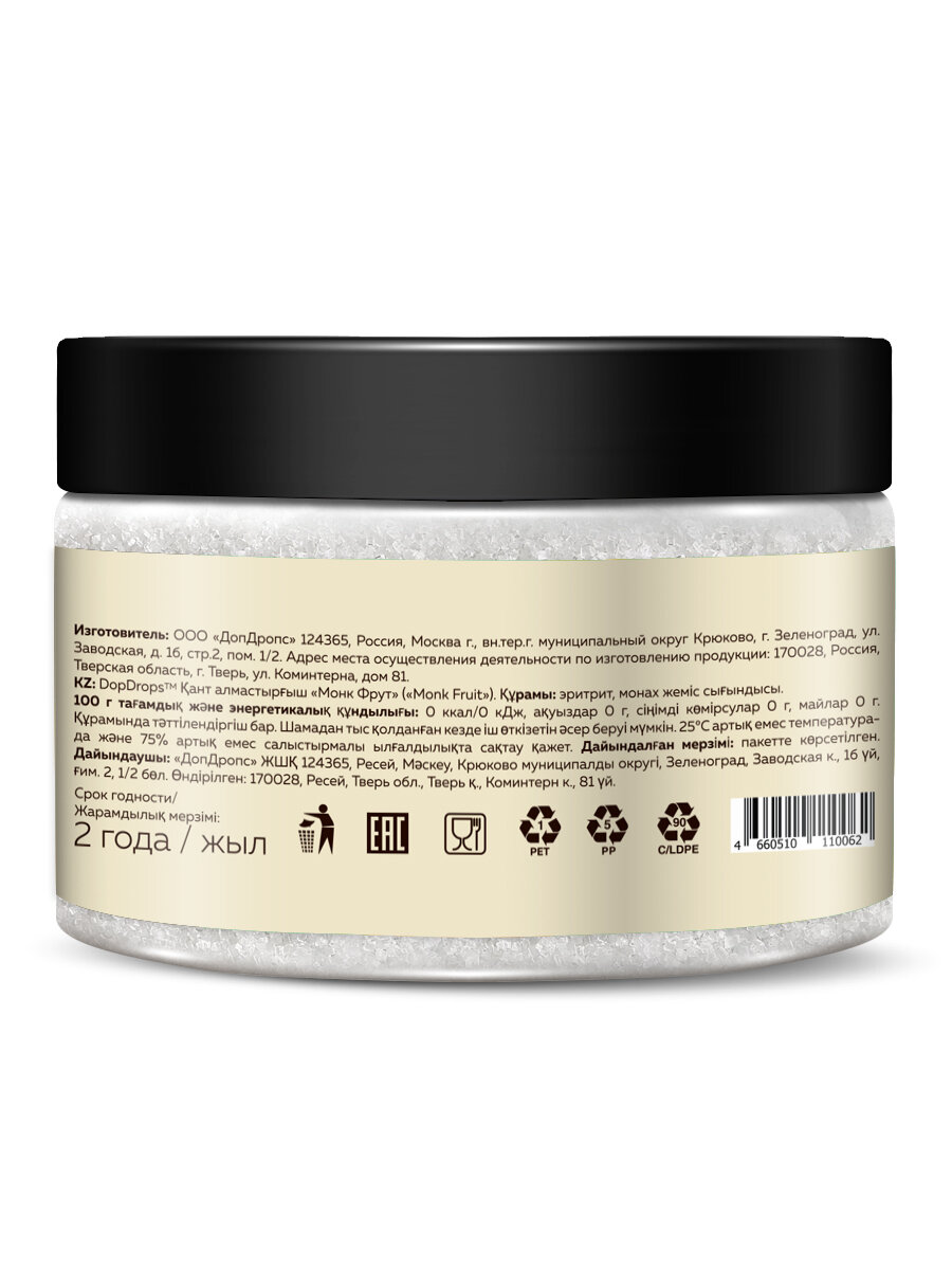 Сахарозаменитель DopDrops Эритрит Монк Фрукт заменитель сахара, 200 г информация: