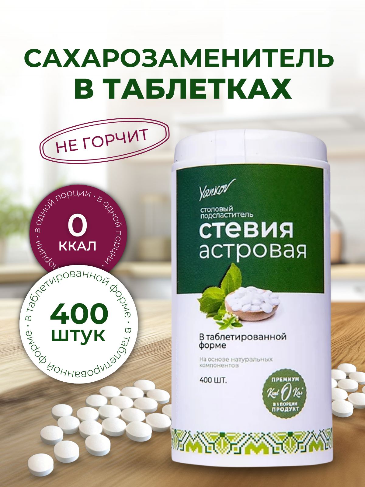 Сахарозаменитель в таблетках Yankov Стевия Астровая, 400 шт. информация: